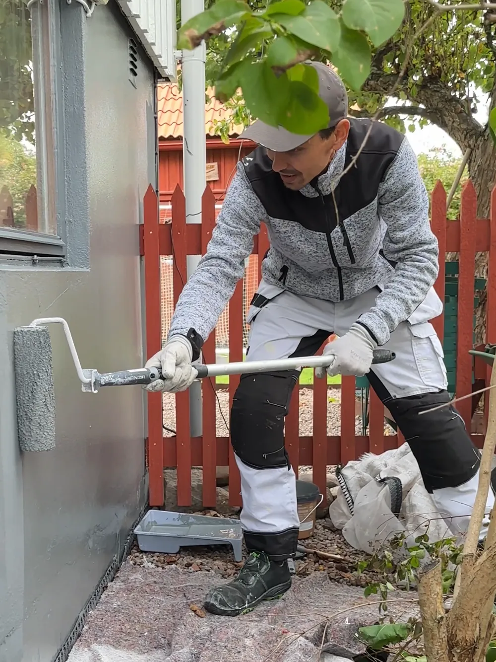 Vi har målat husgrunden med tålig färg för att ge fasaden ett nytt lyft. Noggrant underarbete är A och O för ett hållbart och bra resultat.